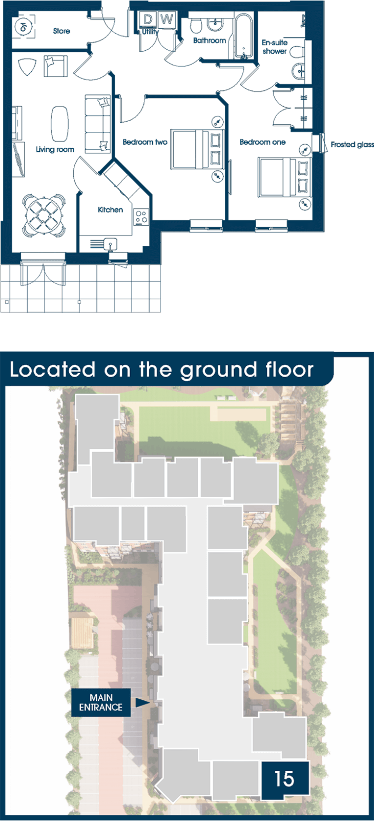A two-bedroom en-suite apartment with south facing patio. The master bedroom benefits from an en-suite shower room as well as fitted wardrobes, and the kitchen has a touch of luxury with Silestone quartz worktops.